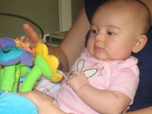 Marilee just returned from her visit to Houston where she delivered her favorite developmental toys to her newest grandbaby, Olivia. Olivia is the 3 month old daughter of Marilee’s son, Jeremy Hartling and his wife, Marisa. Olivia is their first baby.